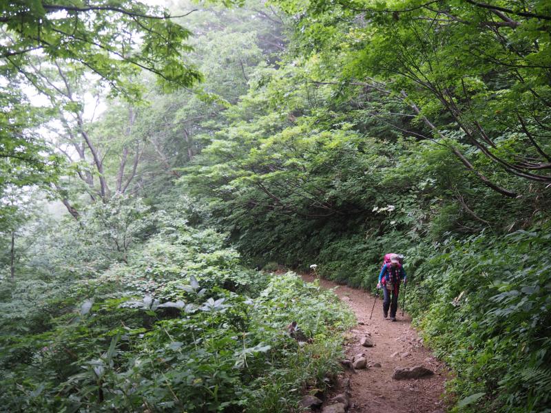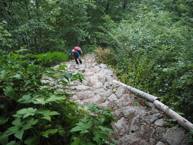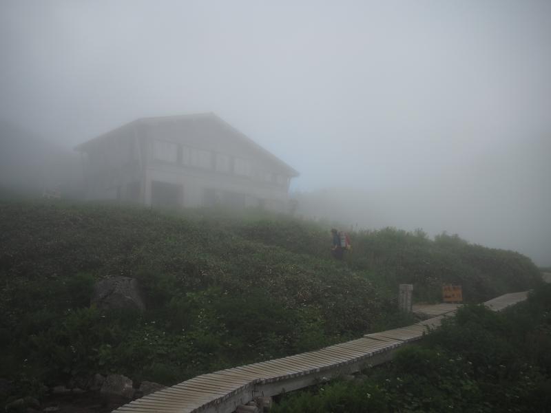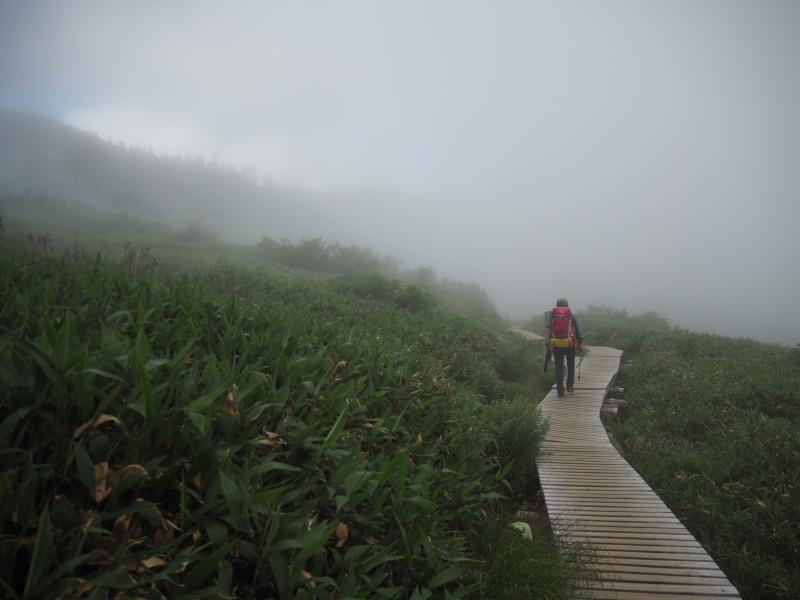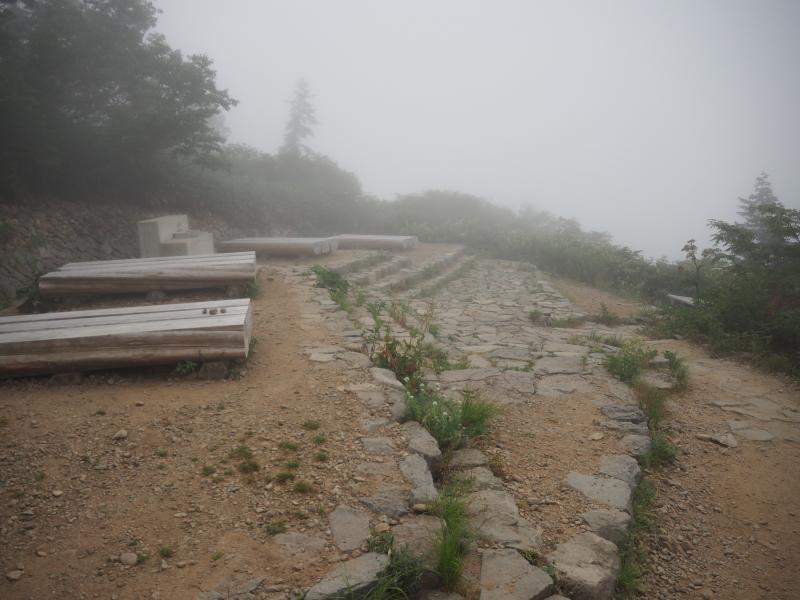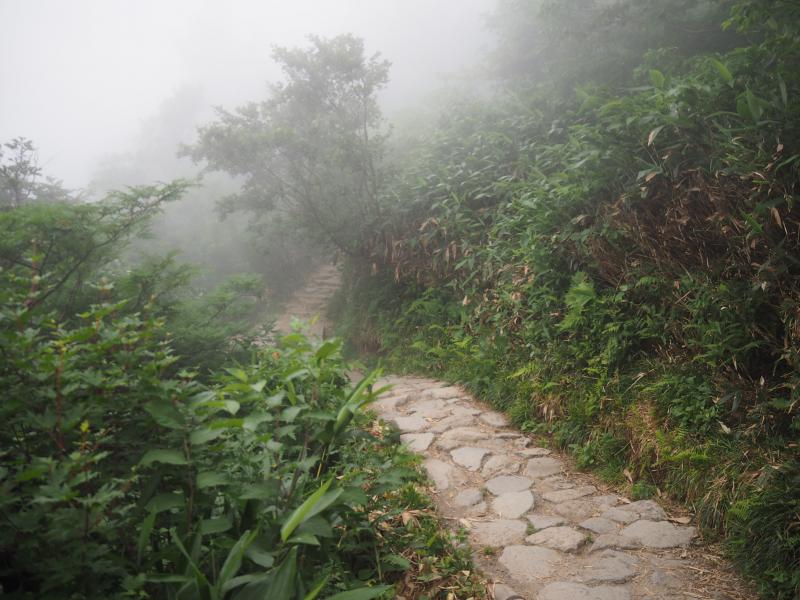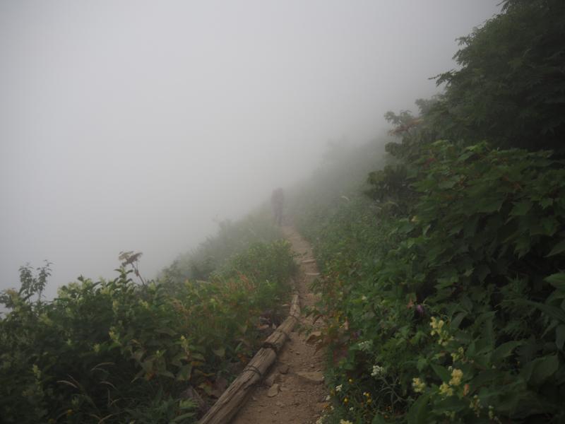 生憎白山は霧の中。雨は降っていないものの湿気が凄い。ジメジメ感がハンパない。いつもより速いスピードで汗が噴き出てくる。雨に濡れたわけでもないのにズボンまでびっしょりだ(笑)