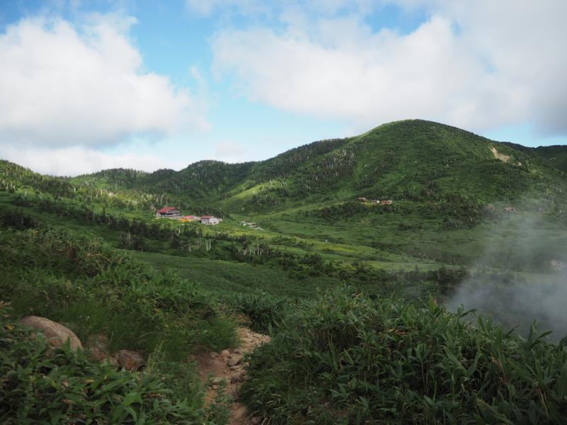 翌朝。一応早起きしてみたものの白山山頂は雲の中。午前中はずっと雲がかかる予報だったので山頂は取りやめ。のんびり朝ご飯を食べて下山とした。