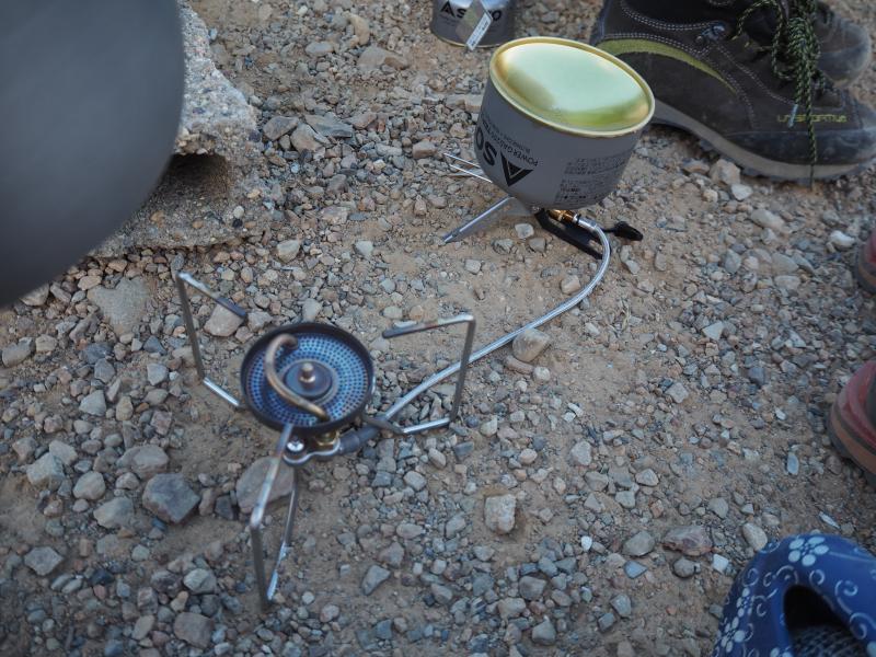 行動時間が短いので荷物が重くてもOK。だから今日は夕飯をちょっと豪華に。生ものも持ってきやすい。早速ビールとおつまみで乾杯だ。有り難いことに次第に雲がとれ綺麗な夕焼けも見ることができた。そして夜中には満天の星空。天の川もくっきりだ。