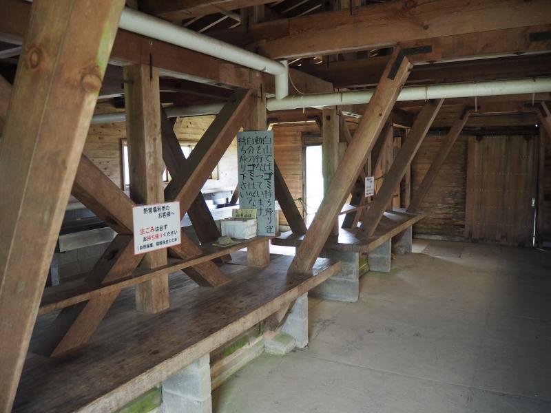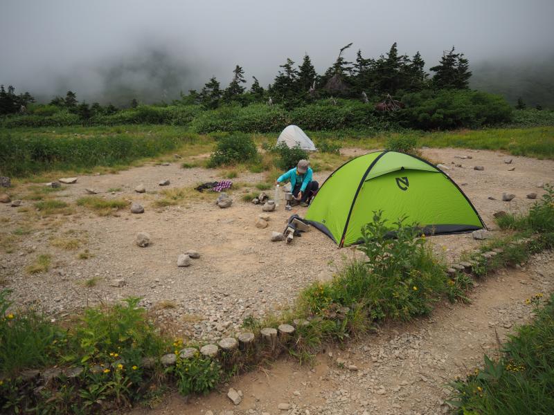 テント場は開けていて開放感たっぷり。何区画かに分かれていて全部で100張ほどたてられるらしい。きれいにならされていて初心者の人でも張りやすくペグもしっかりさせる。炊事場があり雨が降っても大丈夫だ。所々ベンチやテープルがあるので早く到着するとベストポジションを確保できる(今日は遅かった、、、)