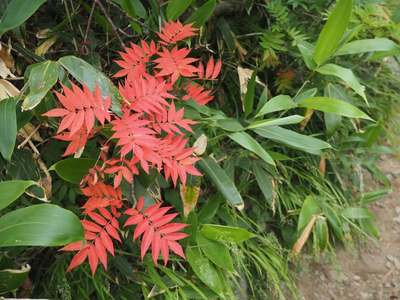 中半場下の下山専用路は足場が少し悪いので注意。落石にも気を付けるよう案内がされていました。