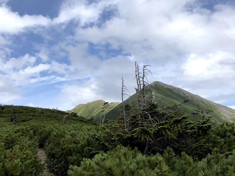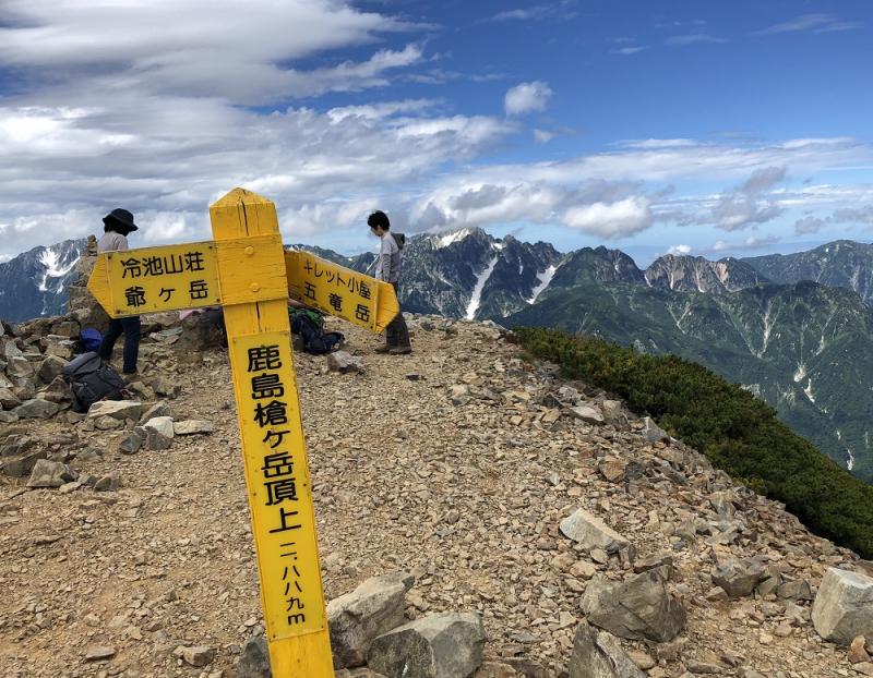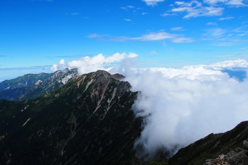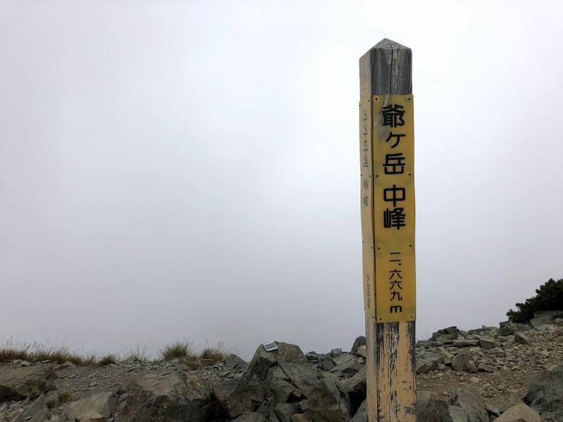 下りが得意な方は頑張って登った分、冷池山荘までは気持ちよく下れます。山荘から爺ヶ岳までは辛抱の登り。それほどきつくはありませんが、復路の行程では一番の登りとなります。無事、爺ヶ岳ピークを踏み縦走完了。