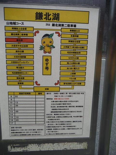 - 西吾野駅(60分)高山不動(30分)関八州見晴台(55分)顔振峠(15分)諏訪神社(70分)釜北湖(70分)東武東上線武州長瀬駅