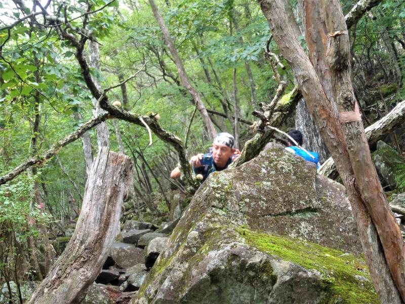 - 駐車場 ⇒20分⇒ 黒檜山登山口 ⇒20分⇒ 猫岩 ⇒85分⇒ 黒檜山1827m ⇒5分⇒ 黒檜大神石碑 ⇒45分⇒ 駒ヶ岳 ⇒45分⇒ 駒ヶ岳登山口