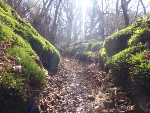 椎葉村から五ヶ瀬町鞍岡へ通じる旧峠道です。ブナを主体とした原生林が残ってます。急登はあまりなく緩やかな尾根沿いの道です。のんびりハイキングにおすすめです。コケも綺麗です。