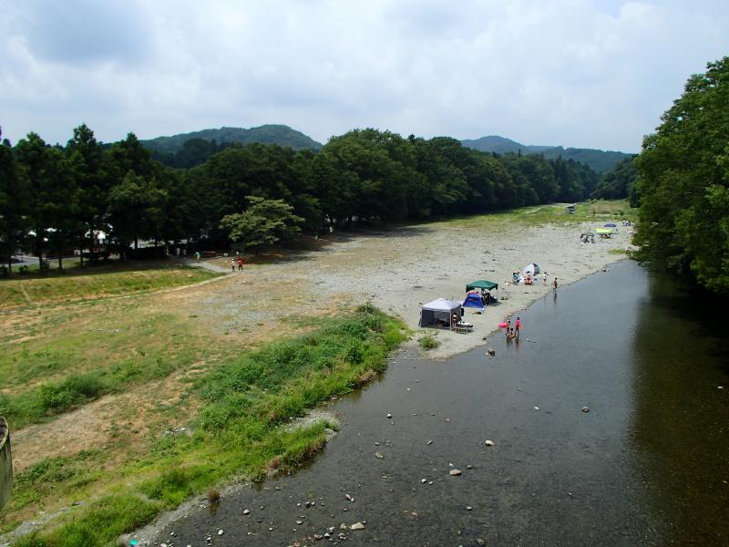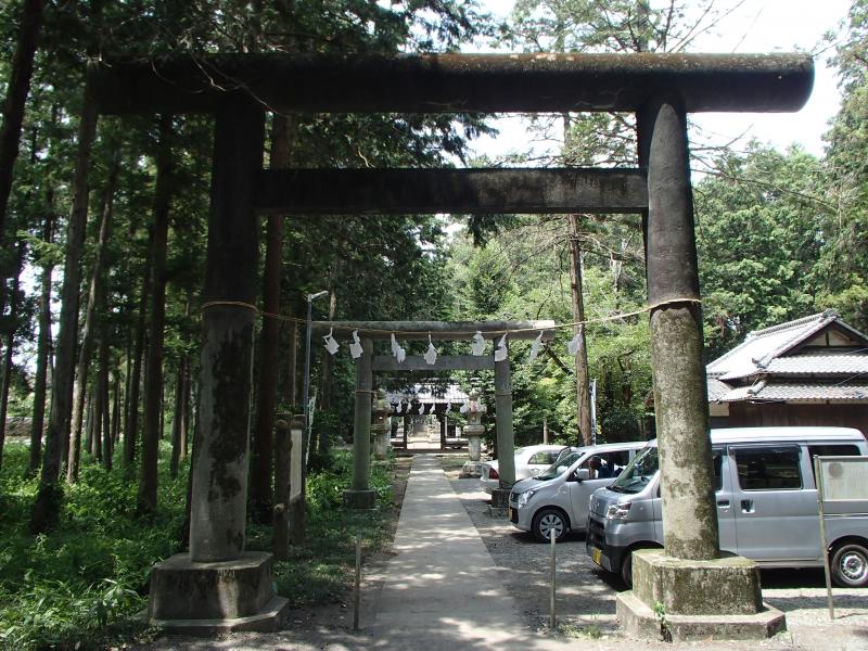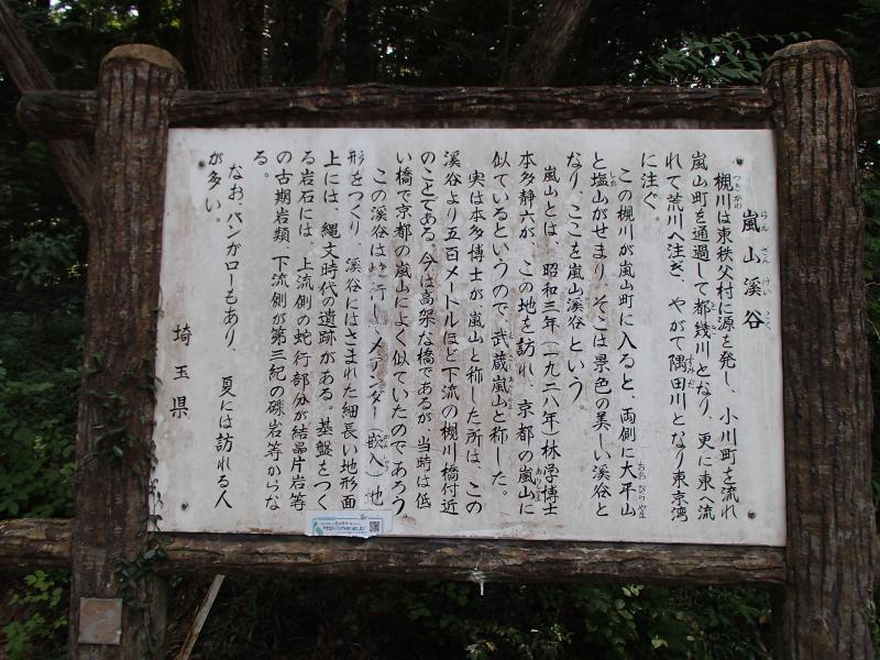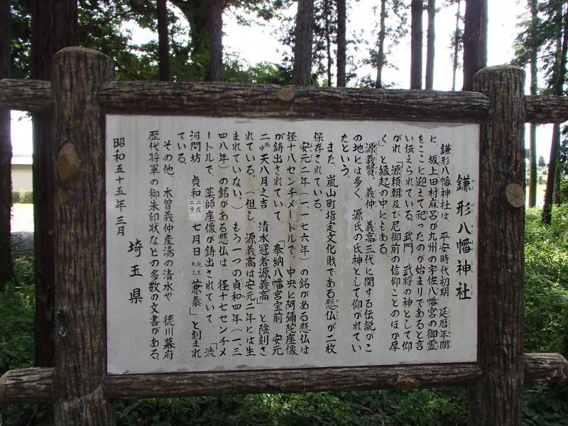 ・途中のスーパーで水分を購入しガイドを読んでいると、大学時に専攻していた「木曽義仲」ゆかりの鎌形八幡宮の文字が。これも何かの縁だと思い、先ずは一般道を歩いて鎌形八幡宮へ。色々な案内を読んで、ウンウン頷きながら元来た道を戻って、嵐山渓谷へ。それにしても暑い・・・。