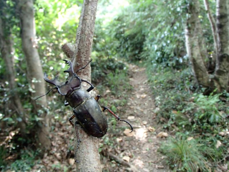 ・登山道に入ってから、暑いことは暑いが熱風ではない風が抜けホッとする。大きな百合の花のお出迎えから、久々に見たミヤマクワガタの歓迎を受け、物見山に到着。7月に低山の縦走なんかするもんじゃないなと思いながら休憩。