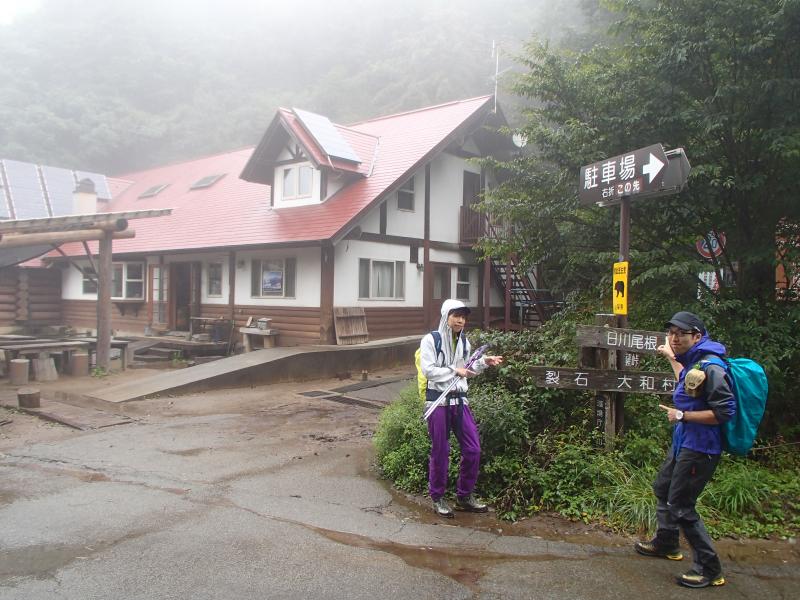 ・雨も上がったので、雷岩の展望と、「周回コース」に変更!を期待したが、展望は無く意見も即却下・・・。そそくさと下山する2人。福ちゃん荘に着くと晴れ間も出てきました。「終わりよければ全て良し!」ではないですが、いい気分で車に戻って談笑し帰路へ向かいました。