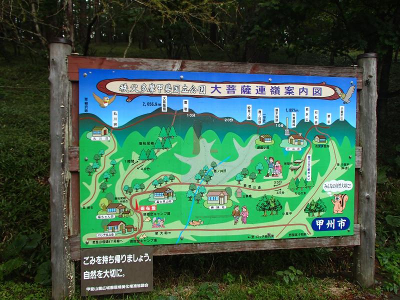 - ロッジ長兵衛>25分>福ちゃん荘>25分>雷岩>12分>大菩薩嶺>50分>福ちゃん荘>15分>長兵衛ロッジ