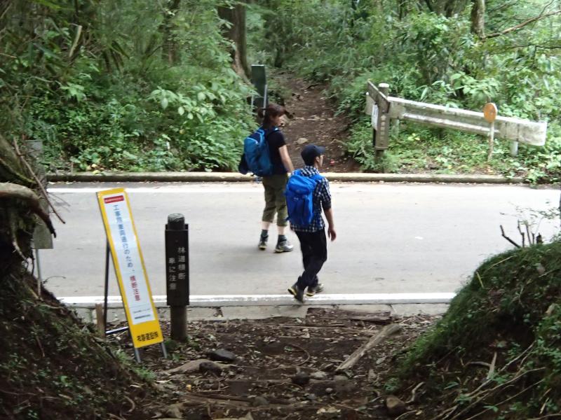 ・1度車道を横切りその後も淡々と緩やかな登りを進みます。なぜが昨日から女帝は「ひょっこりさん!」にハマっており、写真を撮るたびに「はい、ひょっこりさん!」。心の中で二人とも「ひょっこりはんでは・・・。」と思いながら合わせてました。