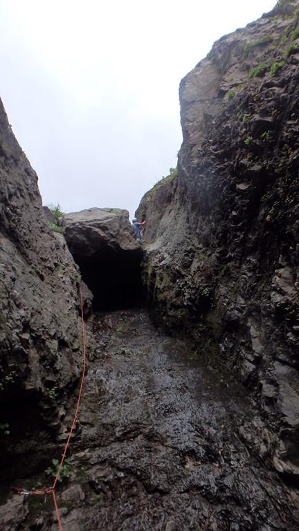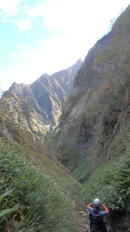 出合いはナメ滝となっており、これがF1。ここからF9まで立て続けに現れますが、どれも一筋縄ではいきませんでした。岩は脆いし、側壁は急峻な上に貧弱な草付きと泥壁。厳しい登攀をこなしながら進んでいきます。核心部はF7からで最大の核心部はF9。仙人の様なパートナーのまさに神がかった登りがなければ突破できなかったと思います。フォローでも登るのが精一杯。気づけば既に出発から6時間を超えており、ここからスピードアップして夫婦の上部に抜けました。その後は懸垂下降でめおと基部に下り旧道に合流してギリギリで明るいうちに下山することができました。