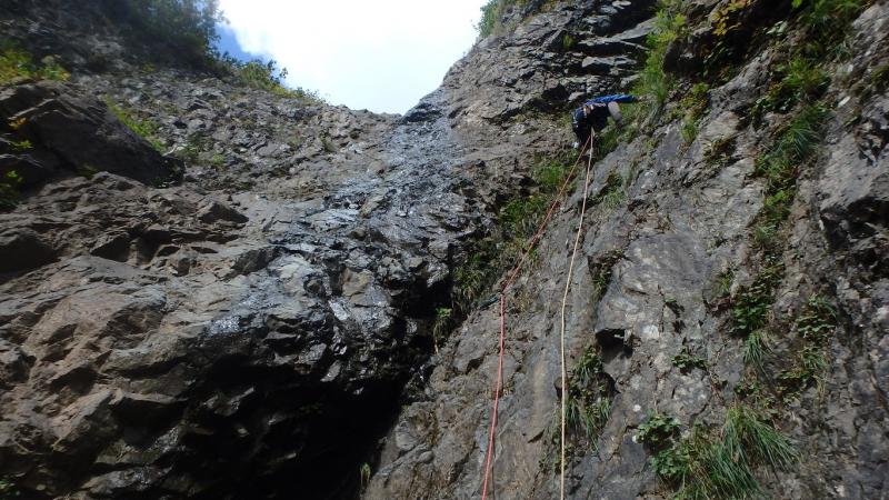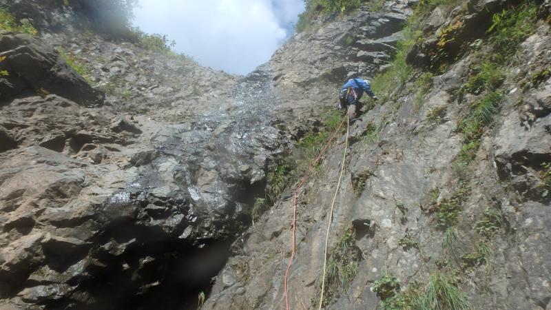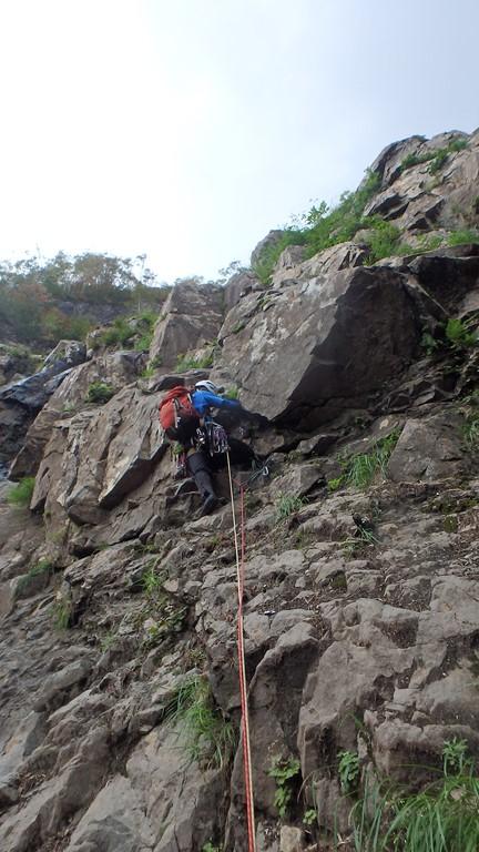 どの滝も悪い。全体的に脆く、ガレており、側壁は脆弱な泥付き、草付きで簡単に巻くこともできない。