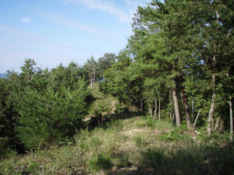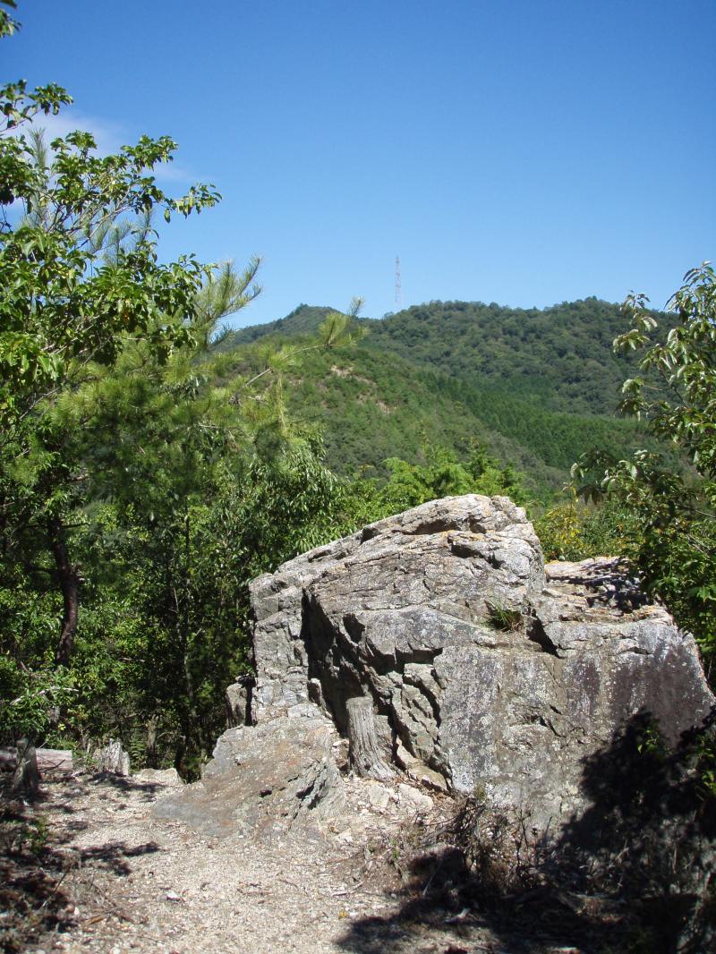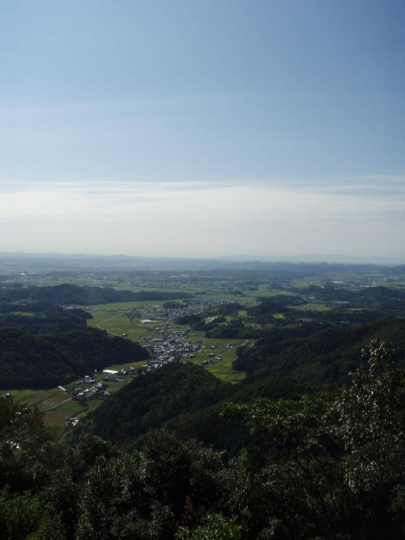 河内町公会堂の駐車場から出発。杉の巨木のある六処神社の裏から入山し、整備された山道を歩いて室町時代に築かれたという河内城跡へ。天気が良かったので、城跡から南の方角に淡路島が見えました。は