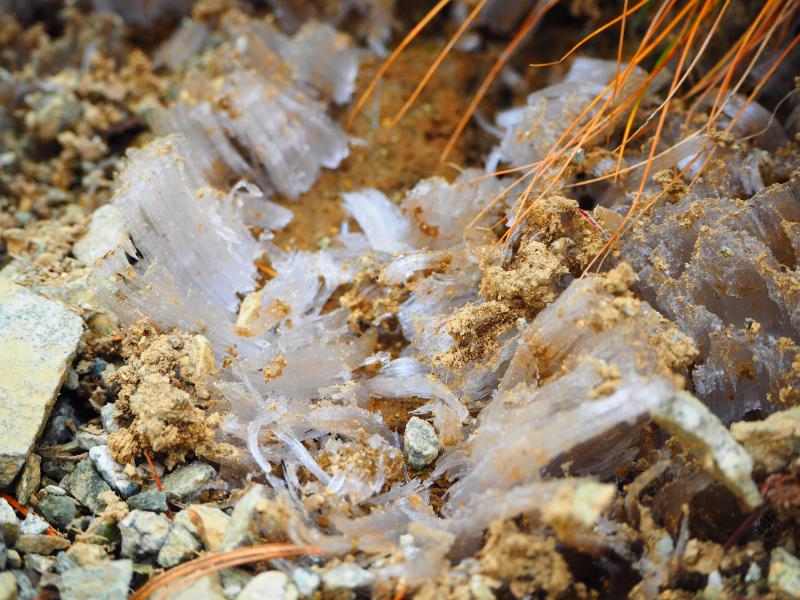 そうなると時間はたっぷりあります。のんびり下山していると、ふと白い物が空から・・・なんと雪が舞っています!!