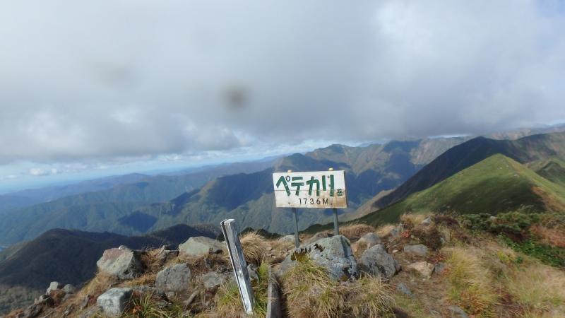 5時過ぎに行動開始。まもなく800m大滝。左岸から高巻き。顕著なカンテを慎重に登りますが高度感有り、緊張します。すぐに上部の滝もまとめて巻きました。その後は次第に谷が開け、階段の状の滝が上部まで延々と続き楽しませてくれます。この日も天気がよく、水流も綺麗になりまさに“秋沢日和”。藪漕ぎも少なく稜線に出て、すぐに頂上に。遥かなるペテガリと呼ばれる日高の名峰。僕も思い入れのある好きな山の一つです。