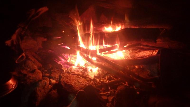 そこから中ノ岳にあがるための660m二股まで下り、北西面直登沢へと入ります。時間があるので860m二股手前まで進みC2としました。午後から雲が広がり出しましたが、夜も雨が降ることなく今シーズン最後となる焚き火を楽しみました。行動時間 時間。今日も疲れました・・・。
