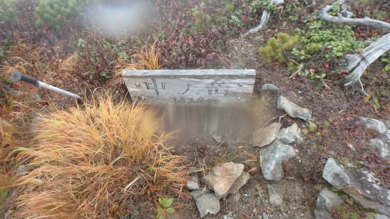 9月末の日高、朝は寒くて震えます。しかも霧雨模様。それでも焚き火を興し体を温め気持ちを奮い立たせます。スケール感はさほどない沢ですが、岩盤状のツルッとした滝が多く簡単には進みません。二日間の長時間行動で重い体を引きずりながら最後はガレを詰めて中ノ岳頂上に。ガスで視界もなく風も強いなか稜線を南下。体温が下がり手の感覚がなくなりました。