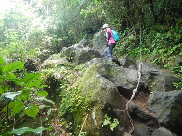 足元はざらざらの小石、そして最後は岩場を登るので足元を確認しながら進みましょう。