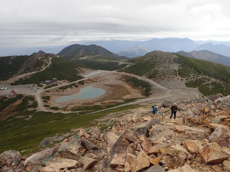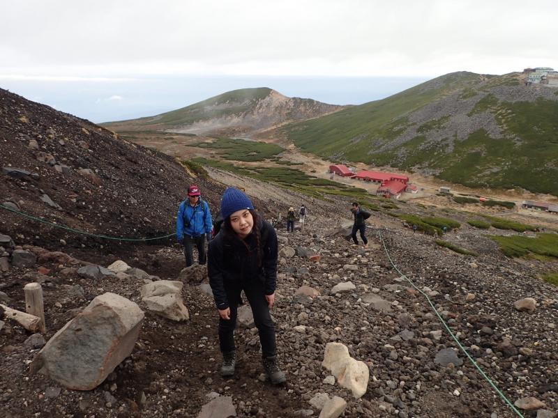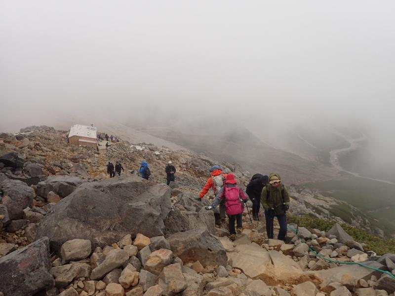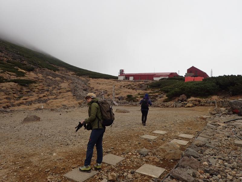 松本までは上野から夜行バス。松本から新島々まで電車で移動し、バスを乗り継いで畳平に到着。乗鞍観光センターまでは半袖でも大丈夫なくらい暖かかったのに、畳平はガスに包まれ晩秋の雰囲気。寒さに一気にテンションが下がり、また思っていたより歩きにくい登山道でさらに元気がなくなった平木。