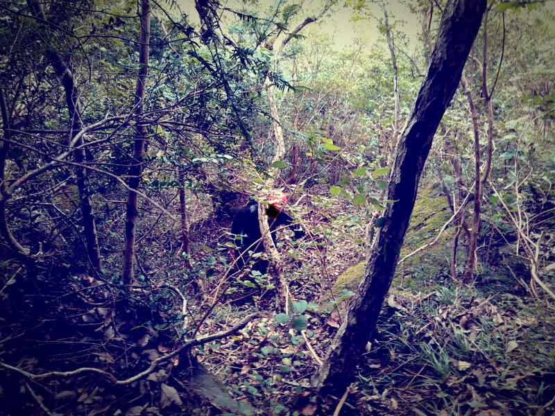 ロープを解いて、蕀を避けた歩き易いルートを、この森の住人である猪の踏み跡に教わりながら最後の一登りをこなします。