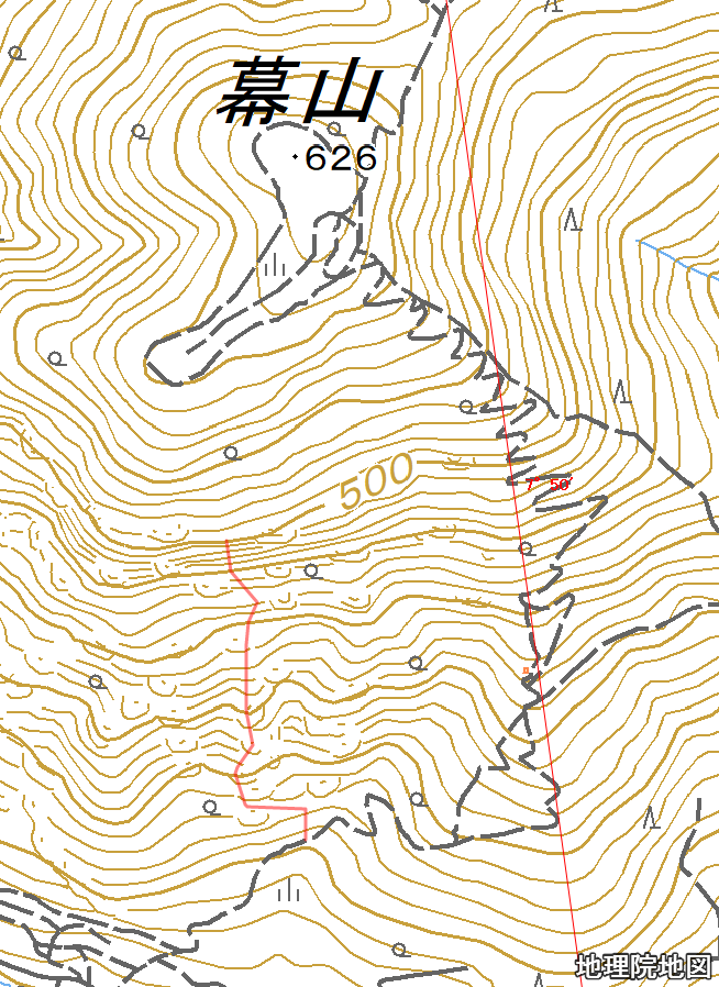 このルートは、終了点より上を山頂まで繋げる事が出来ますが、藪漕ぎになる事もあって記録はあまりありません。