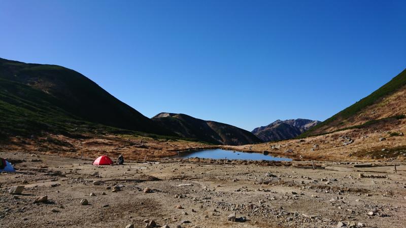 双六小屋のテント場はけっこう広くすでに20張くらいの先客。