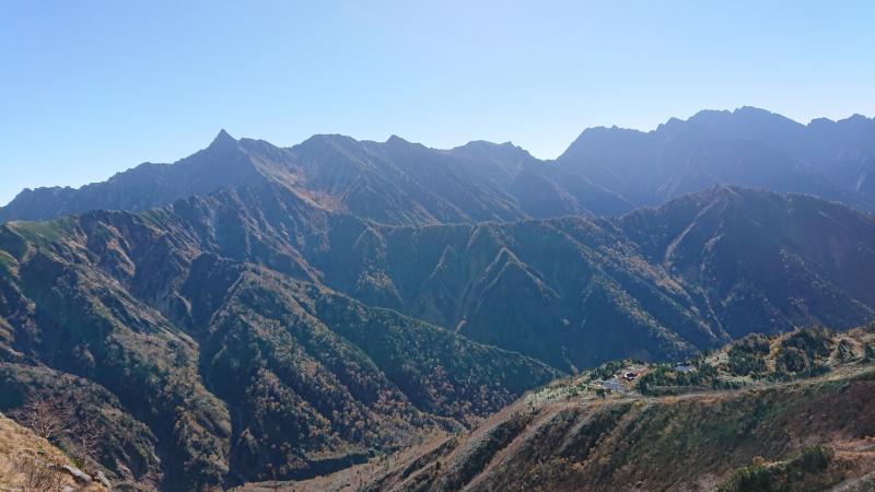 双六小屋から鏡平までは槍穂方面がずっときれいに見え、稜線がずっとはっきり。