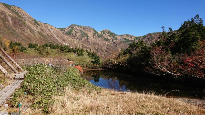 - 【10月7日】9:50鍋平駐車場(40分)新穂高駐車場(70分)わさび平小屋(25分)小池新道登山口(135分)鏡平山荘(100分)双六小屋15:40