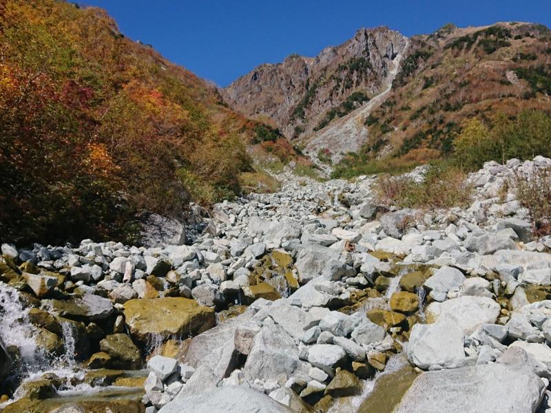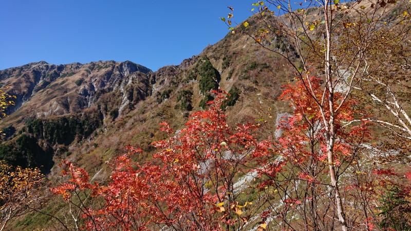 鏡平~登山口入口は、ずっと赤黄橙の山肌に囲まれきれいでした~。