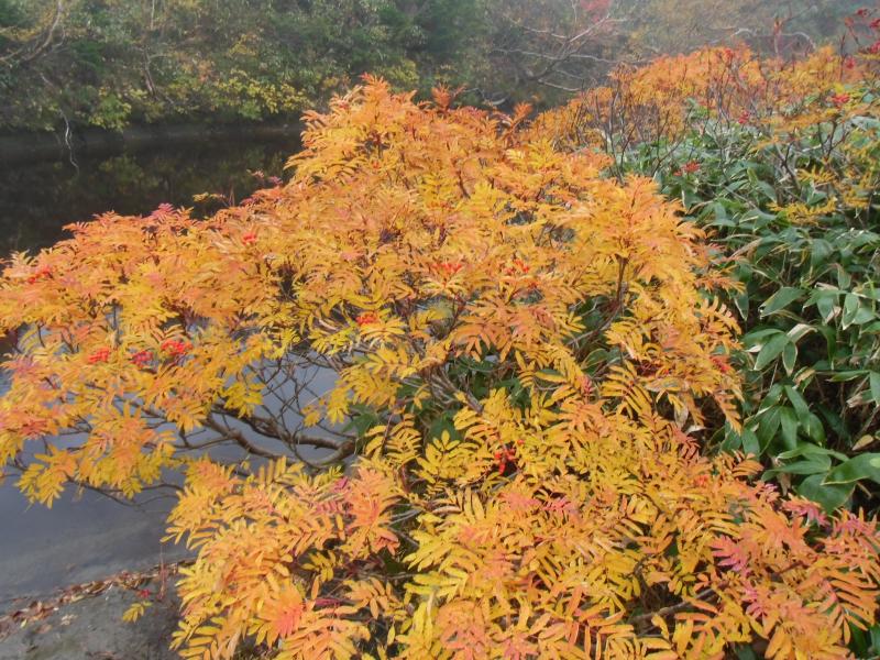 前日気づかなかった木々、葉の色づき、紅葉が美しい。