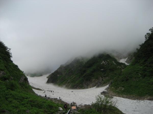 晴れていても、雪渓の風はひんやり冷たいですので、汗冷えしないように衣服調節してください。