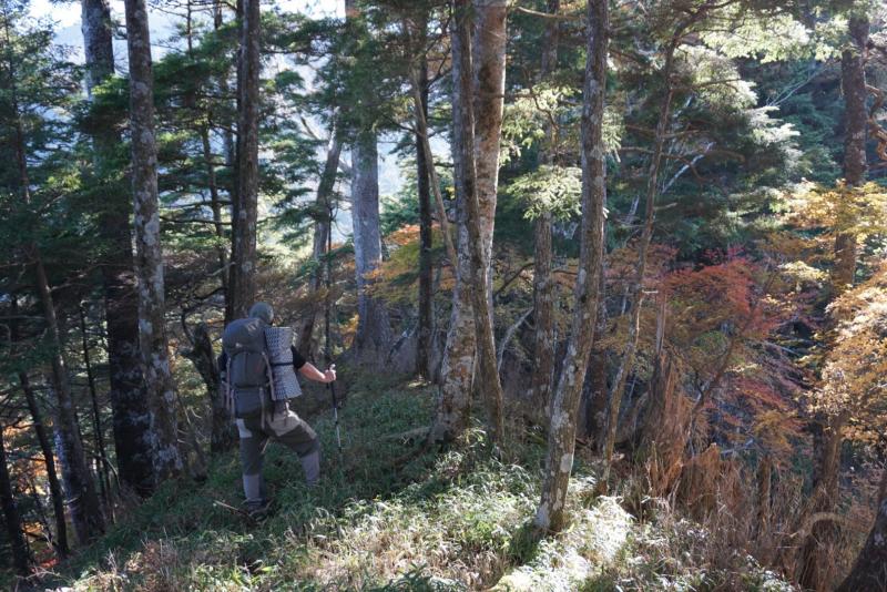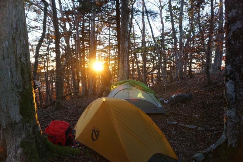 すると、やはり一筋縄ではいかず、苦労の連続でした。運動不足の上、久々のテント泊。一般的な登山道ではあまり出てこないような急登に大腿筋や腰が悲鳴を上げ、背丈も超える深い笹の海に行く手を阻まれ、行く先とは違う尾根に下ってしまってまた登り返し、帰りの長い急な下りでは、「もうご勘弁を」と膝が泣き言を言っていました。一泊二日の山行でしたが、久々に強い疲労感にさいなまれ、とても長い山旅のように感じました。