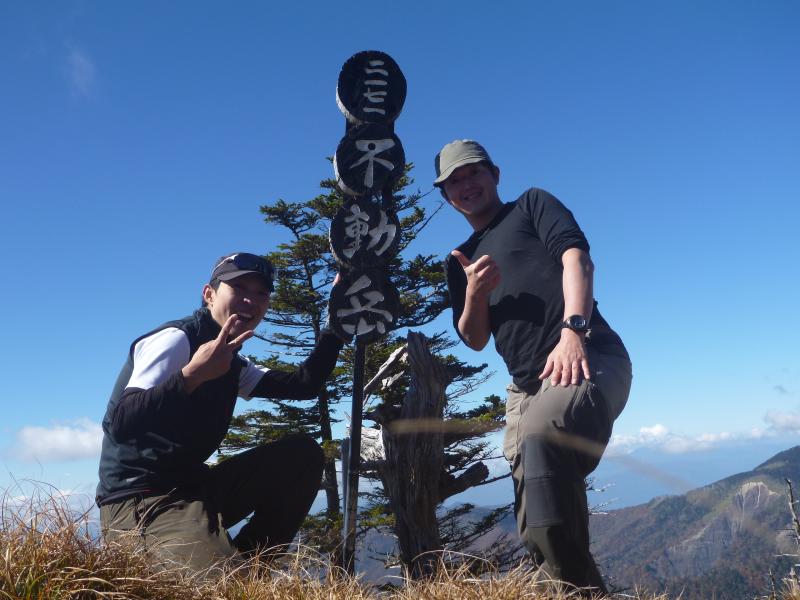 不動岳山頂も展望が素晴らしく、深南部の他の山々や南アルプスの百名山、聖岳や光岳も見え、文句なし、今までの疲れを吹き飛ばしてくれるような、そんな達成感を味わわせてくれました。