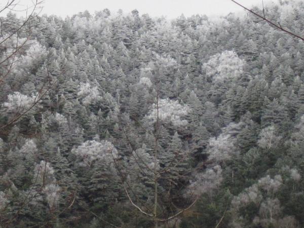 遠望すると山頂付近は白くなっており、積もってるかな?という感じでしたが実際登って見ると雪が軽く乗っている程度でコース全体を通してアイゼンは使いませんでした。日蔭は滑りやすく注意が必要でした。今後はアイゼン必携です。