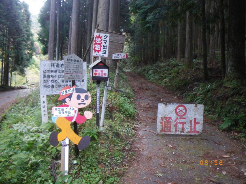 ②岩ヶ谷林道起点にゲートがあり、ここに鈴鹿10座の標識があります