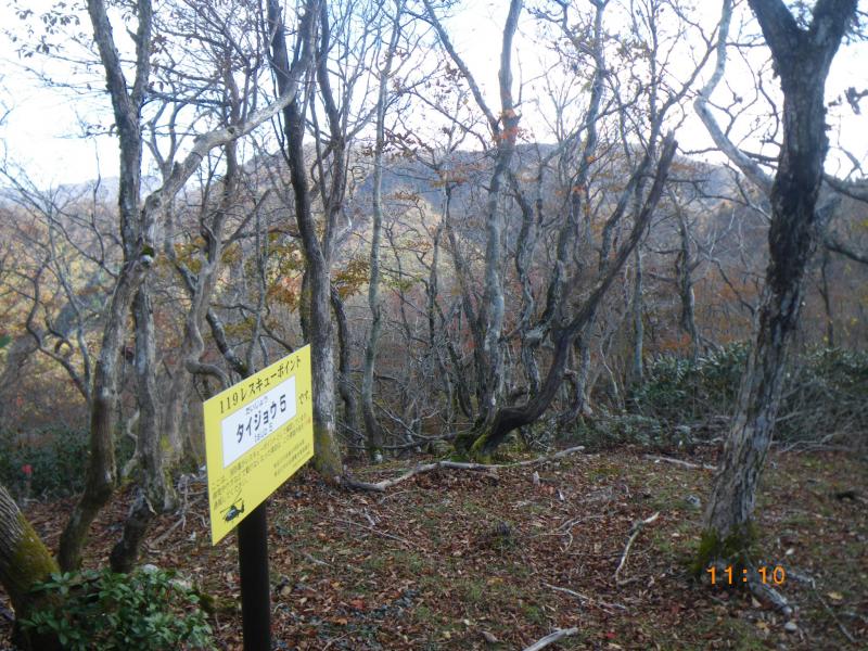 鈴鹿にはカタカナのピークが多いですがほぼマイナーピーク。このタイジョウは破線の登山道が走りますが、途中の標識ははっきりしています。鈴鹿の破線の登山道はだいたい道ははっきりしていることが多く、迷うことは少ないですが、細い登山道が多いと思います。秋になるとこの破線の登山道も葉が落ちた樹林帯も増え、見通しが効き歩きやすくなります。