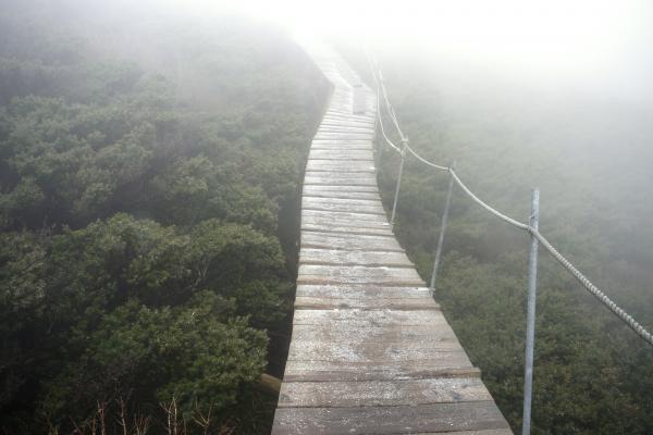 - 六合目までは、ほとんど階段続きで淡々と歩けます。六合目から八合目が少し急登になり、八合目から山頂までは木道になります。コースのほとんどが階段と木道なので初心者の方にも歩きやすいですが雨や雪の日は滑りやくなるので注意が必要です。※ちなみに下山時に三回ほど滑りました…。