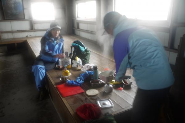 あいにくのガスで視界が悪く真っ白、紅葉も素晴らしい展望もみられませんでしたが