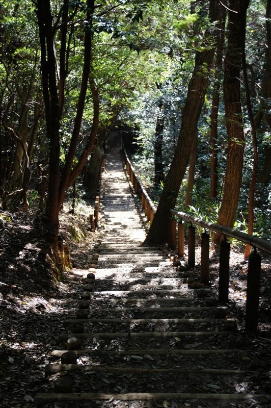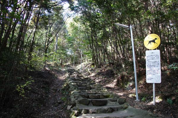東谷山フルーツパーク側の散策路は歩きやすいのですが長~い急な木製の階段が続きます。