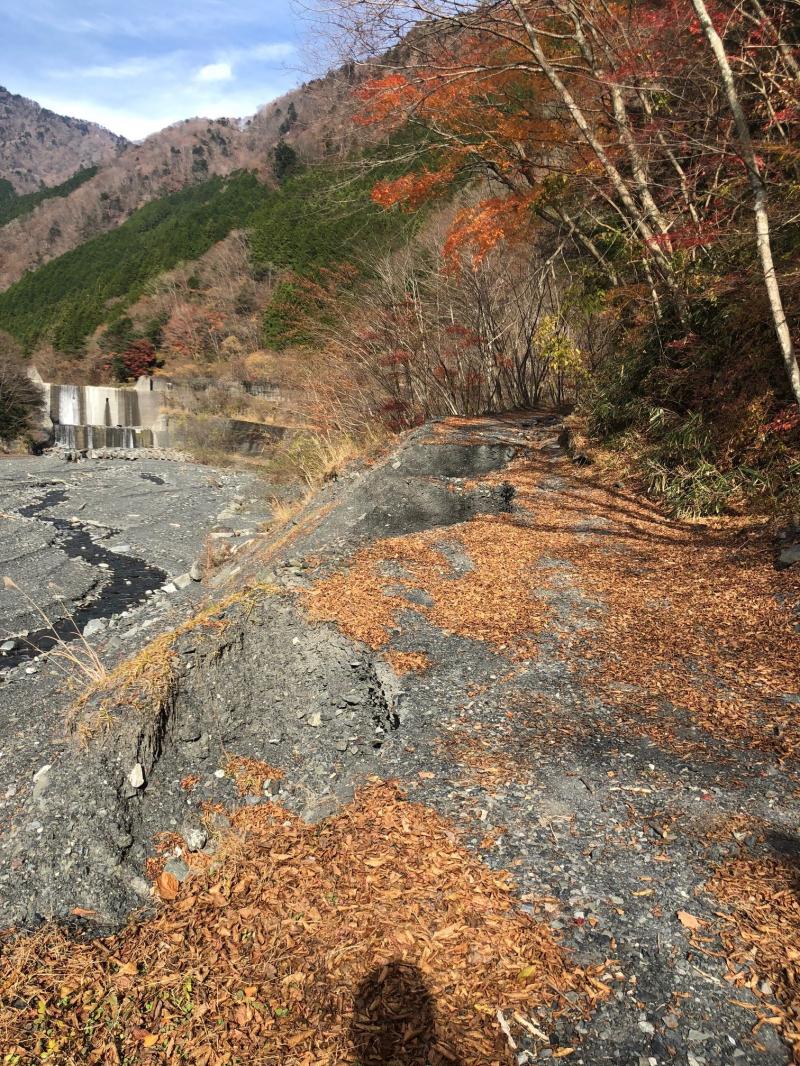 途中、地面陥没していたので、奥まではいけないので手前の広いところに駐車したほうがいいです。