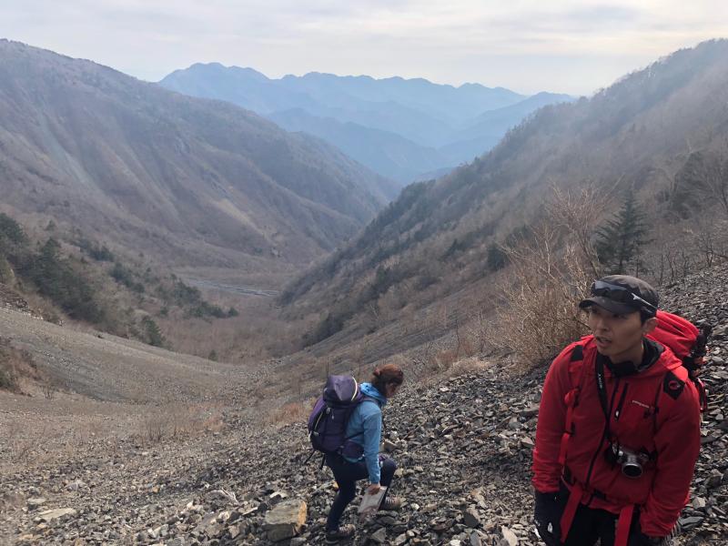 まぁまぁな傾斜で、歩くたび足がずるずると持って行かれるザレ場でした。