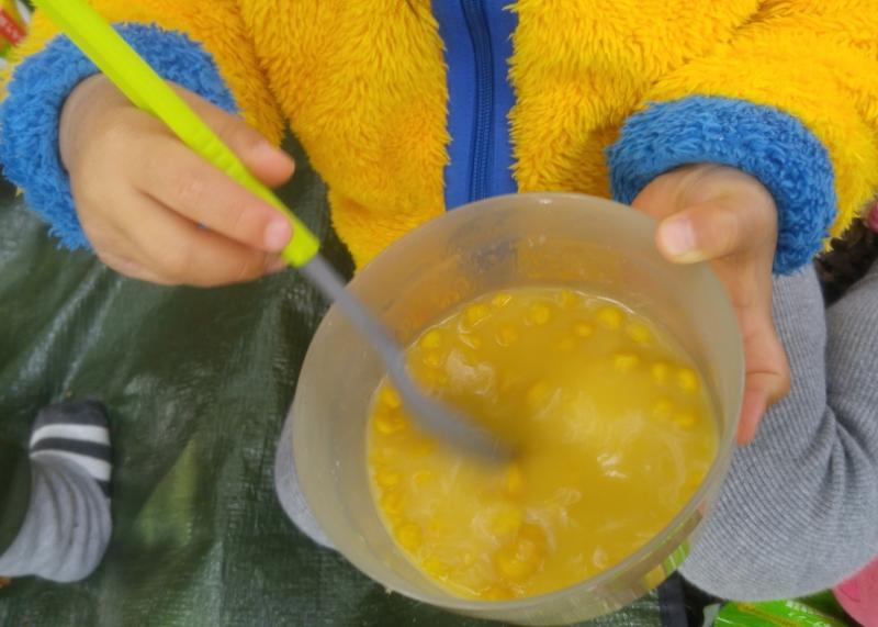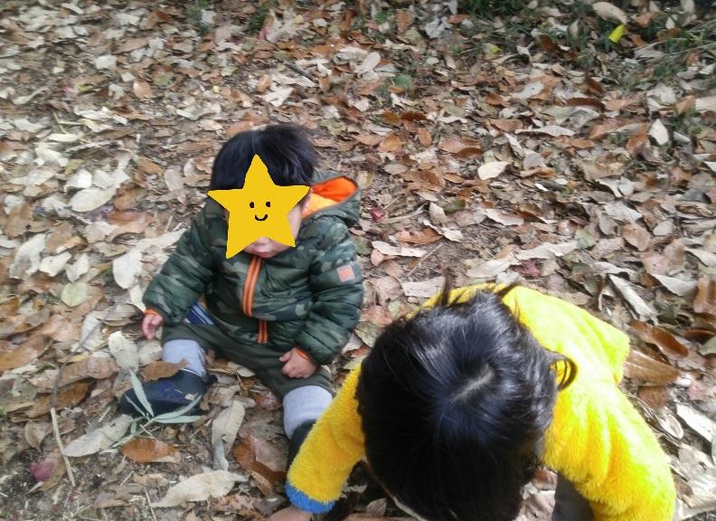 と思ったら、子どもたちは落ち葉遊びスタート!