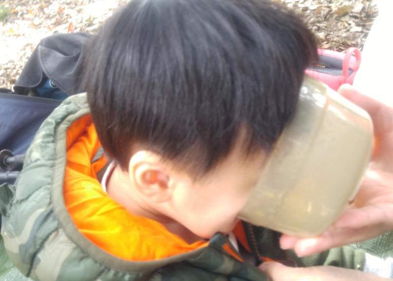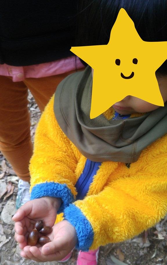 どんぐりを拾ったり、おやつタイムにしたり子どものペースに合わせてのんびりと登っていきます。