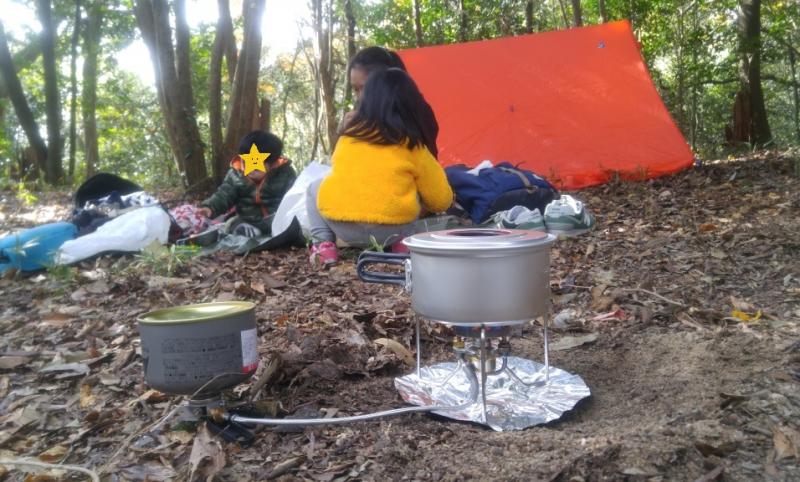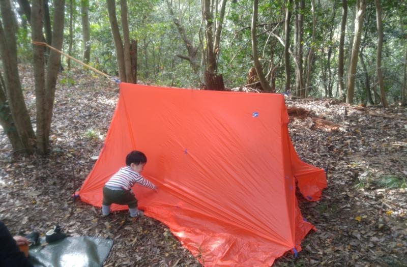 オールウェザーブランケットを広げ、横にはツェルトをセット。
