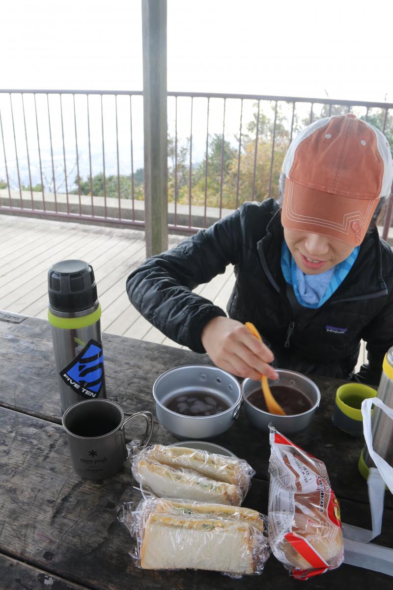 下山した穂高湖の周りも紅葉が綺麗です。期待していなかっただけに、得した気分になれました。団体様去ったあとの、貸し切りの掬星台のベンチで休憩を取りました。(ランチ時間をさけたほうが無難ですね)じっとしていると、寒くなります。温かなお汁粉がとても美味しかったです。摩耶山三角点にタッチして、掬星台に戻り、山寺尾根を下ります。急な下りですが、バランスを取るのに、リハビリに最適な道です。