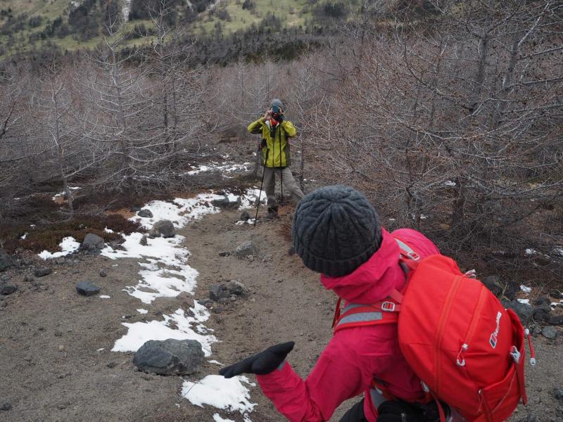 火山館より上の樹林帯を抜けると、富士山のような火山特有の登山道になります。