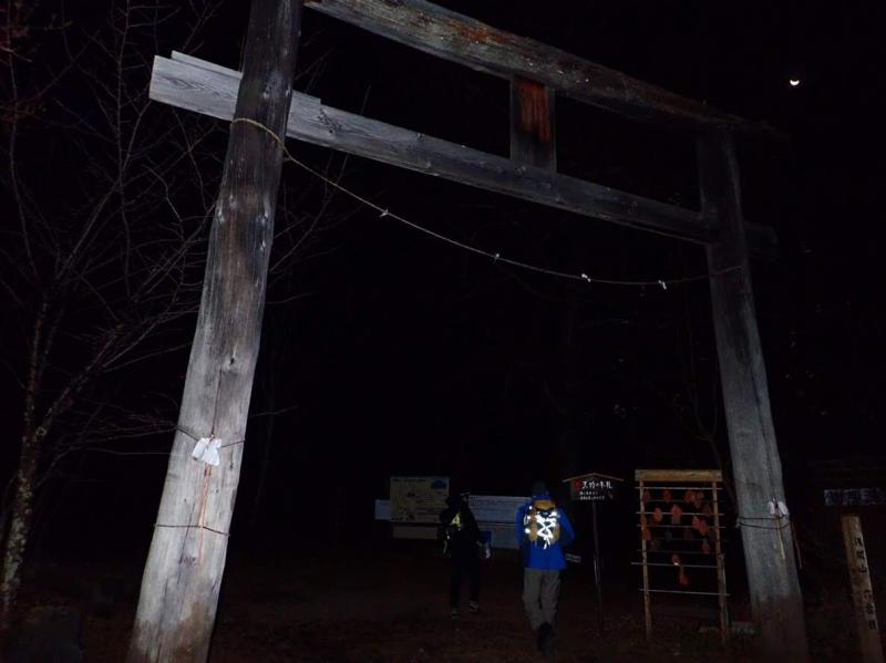 まだ暗い登山道をヘッドランプを装着して、いざ出発!