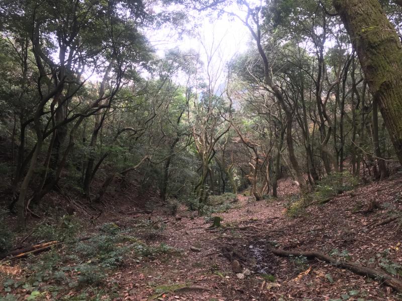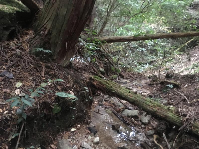 下山道はそこそこの急な下りで、途中沢沿いも歩きます。