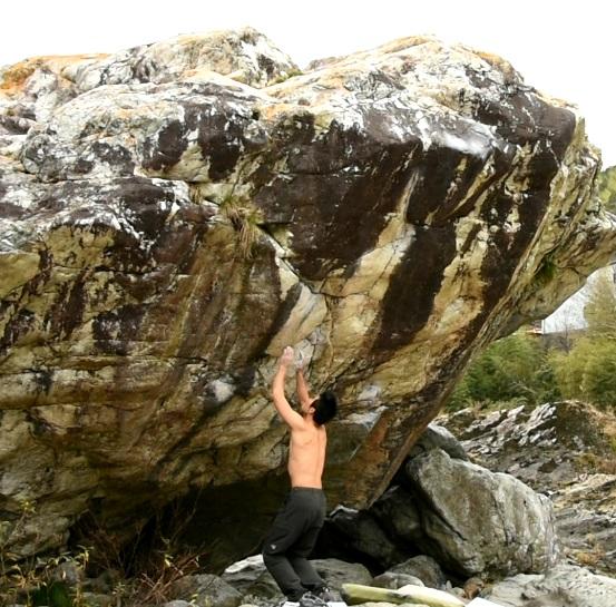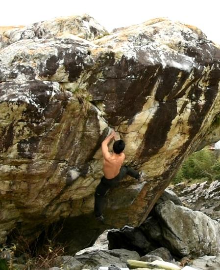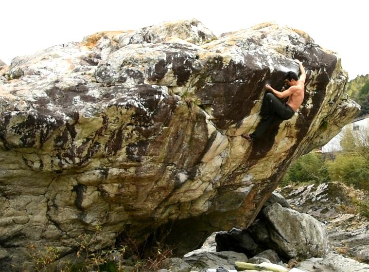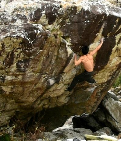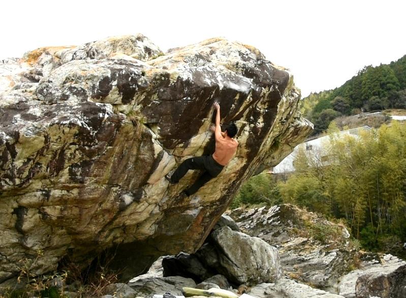 初めてこの岩を触ったのは一ヵ月前で、その時はガストンを取っても全然ムーブを起こすことができませんでした。それから一ヵ月の間に3日通い、ひたすら打ち込み、登れず撤退して帰ってもムーブを意識したトレーニングを繰り返し、4日目の1/1にようやく完登することができました。