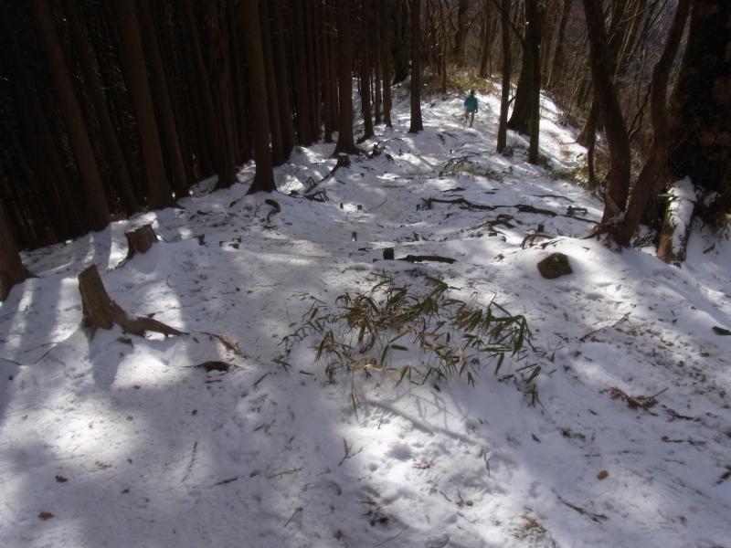 尾根道、上部は雪道でした。早く霧氷が見たいな~